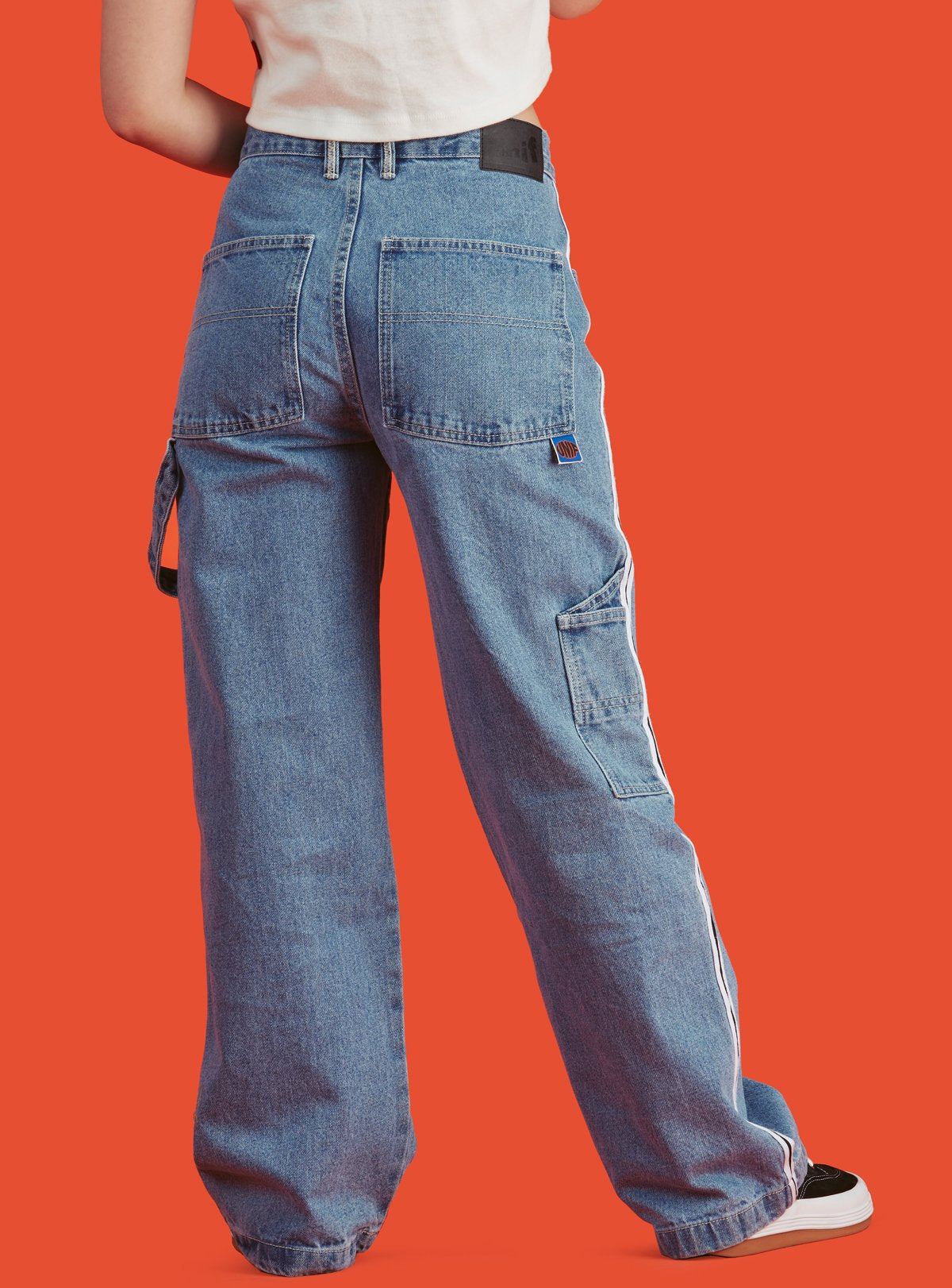 The Cox Jean is a suuuper relaxed straight leg fit with a UNIF XXX flag tag at the back pocket and at the back waist. Applique stripes down the sides, branded hardware, zip fly, side and back pockets. A perfectly faded ( 😏 ) wash, like you've had em forever. Fit is a higher rise and runs true to size.