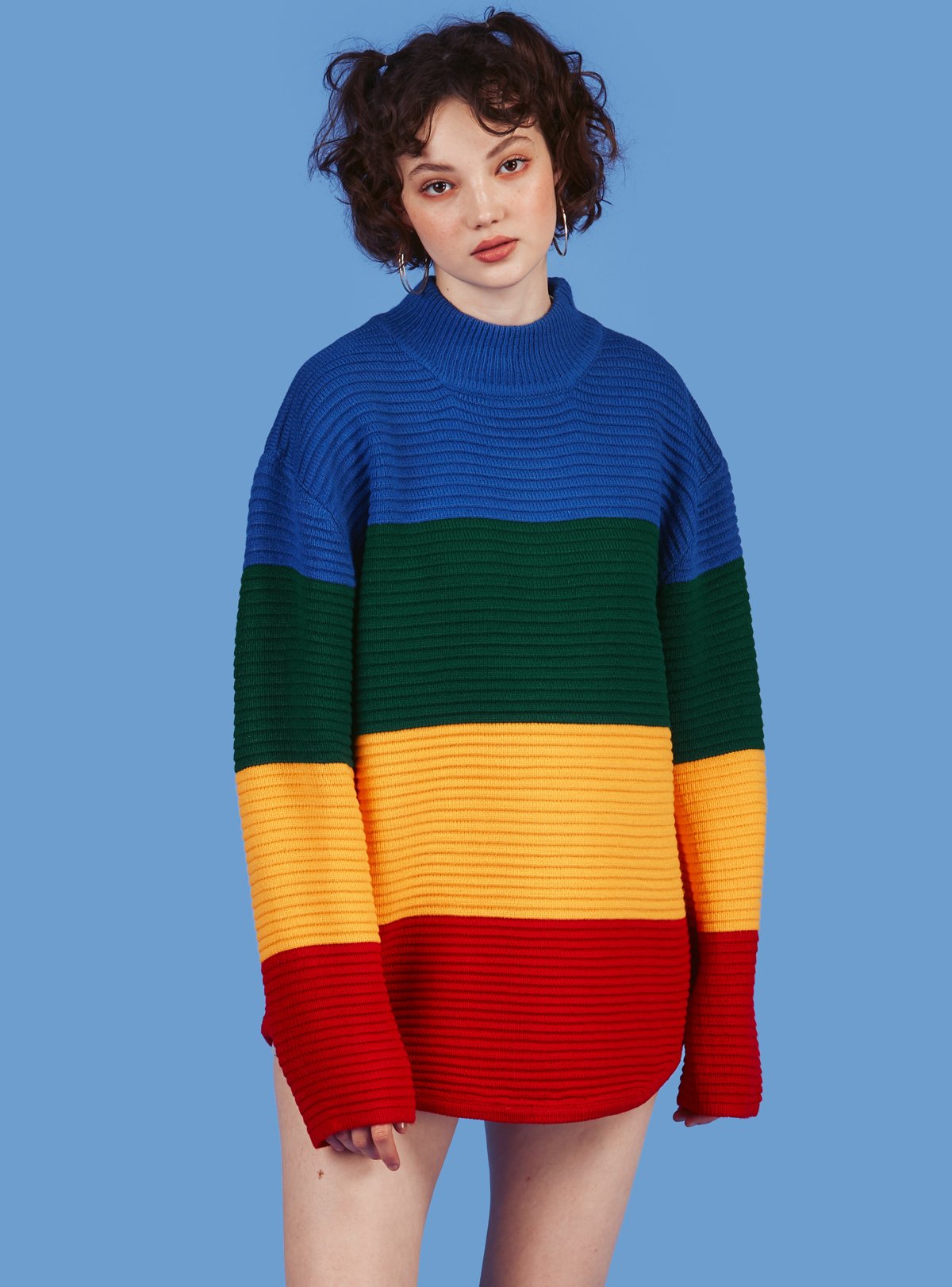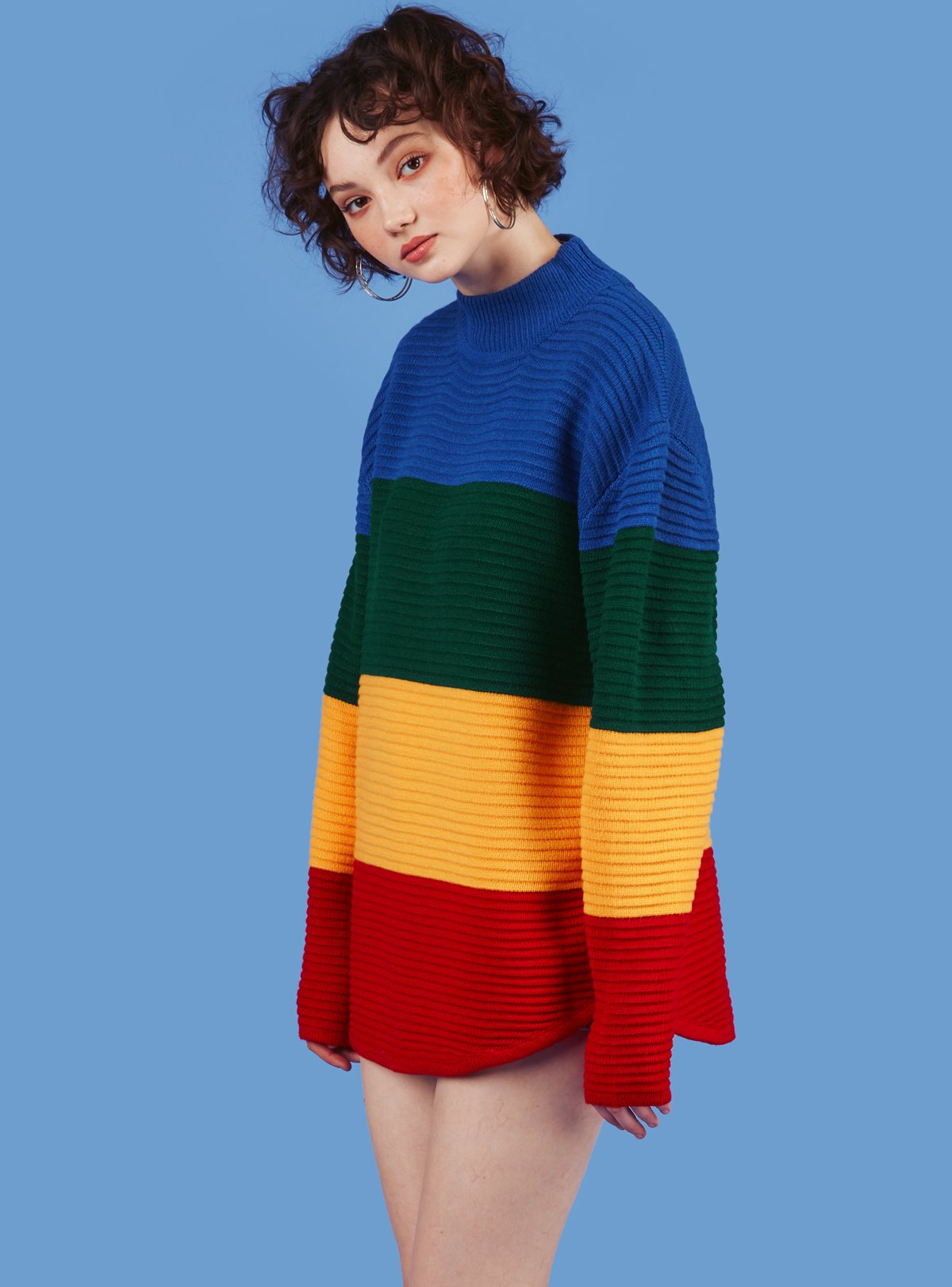 Oversized, color blocked sweater with textured ribbing. Fit is oversized but runs true.