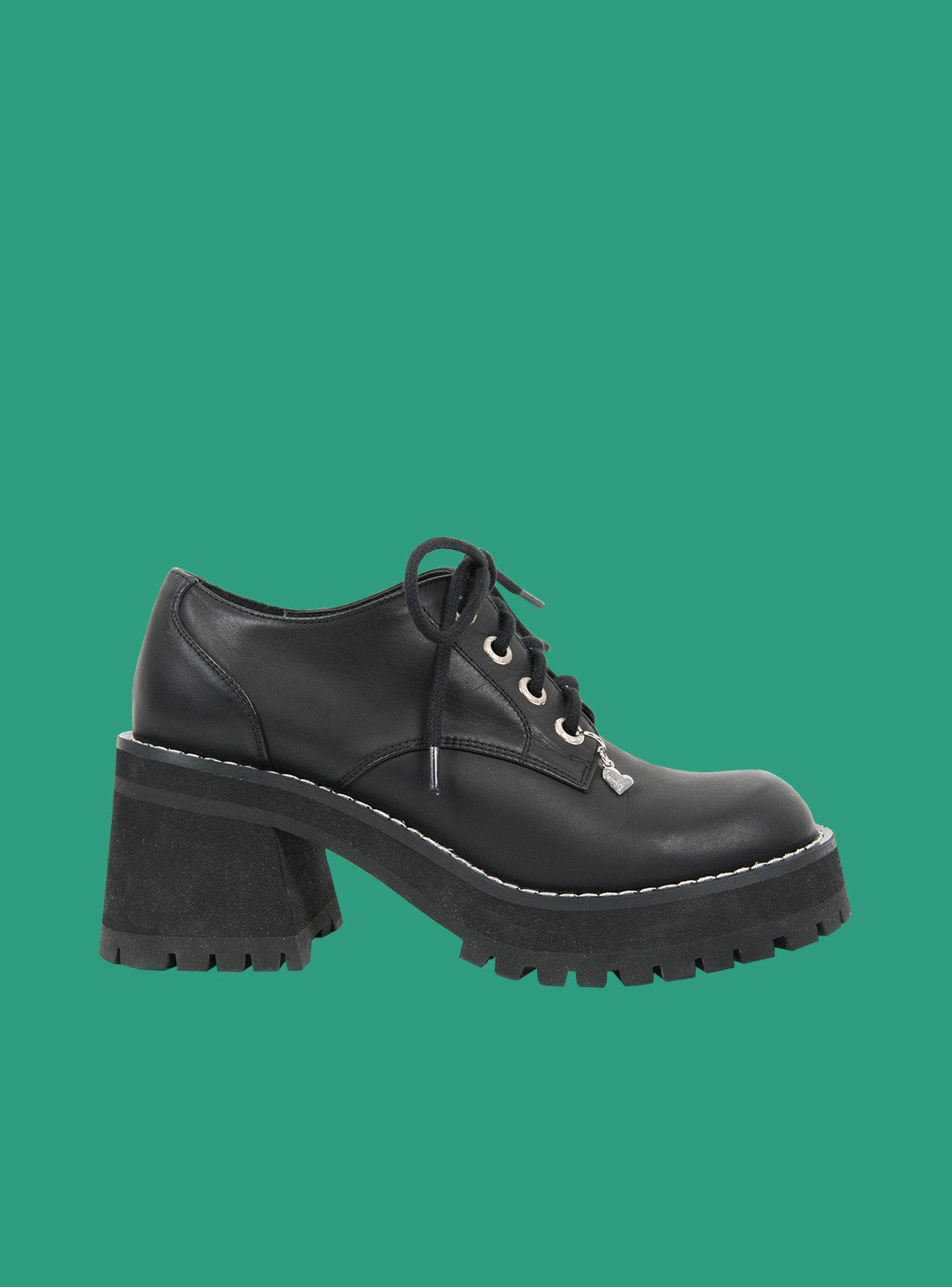 It's a low top shoe with all kinds of Boot fixin's. Laceup with metal eyelets, rugged platform boot sole and contrast stitching at the welt.