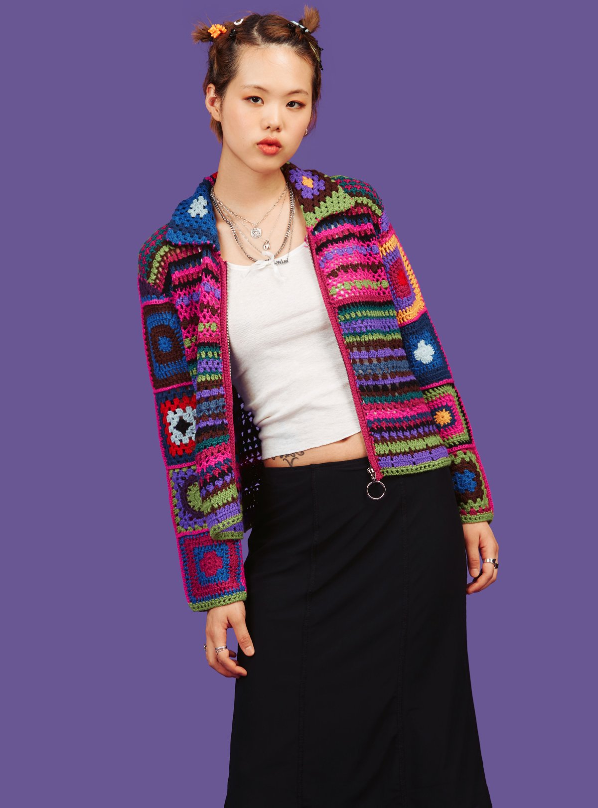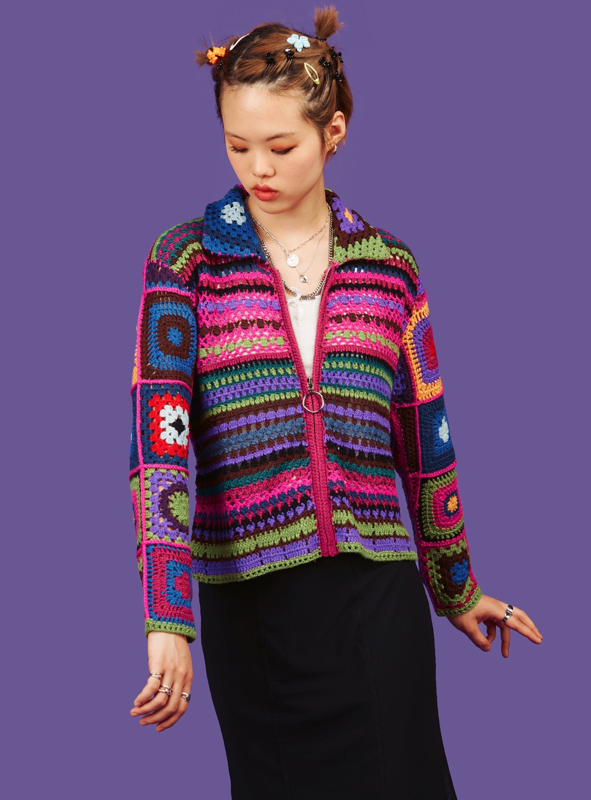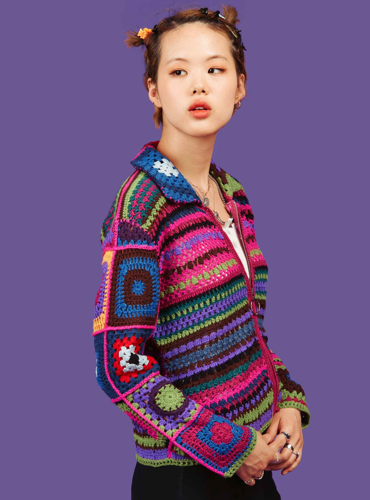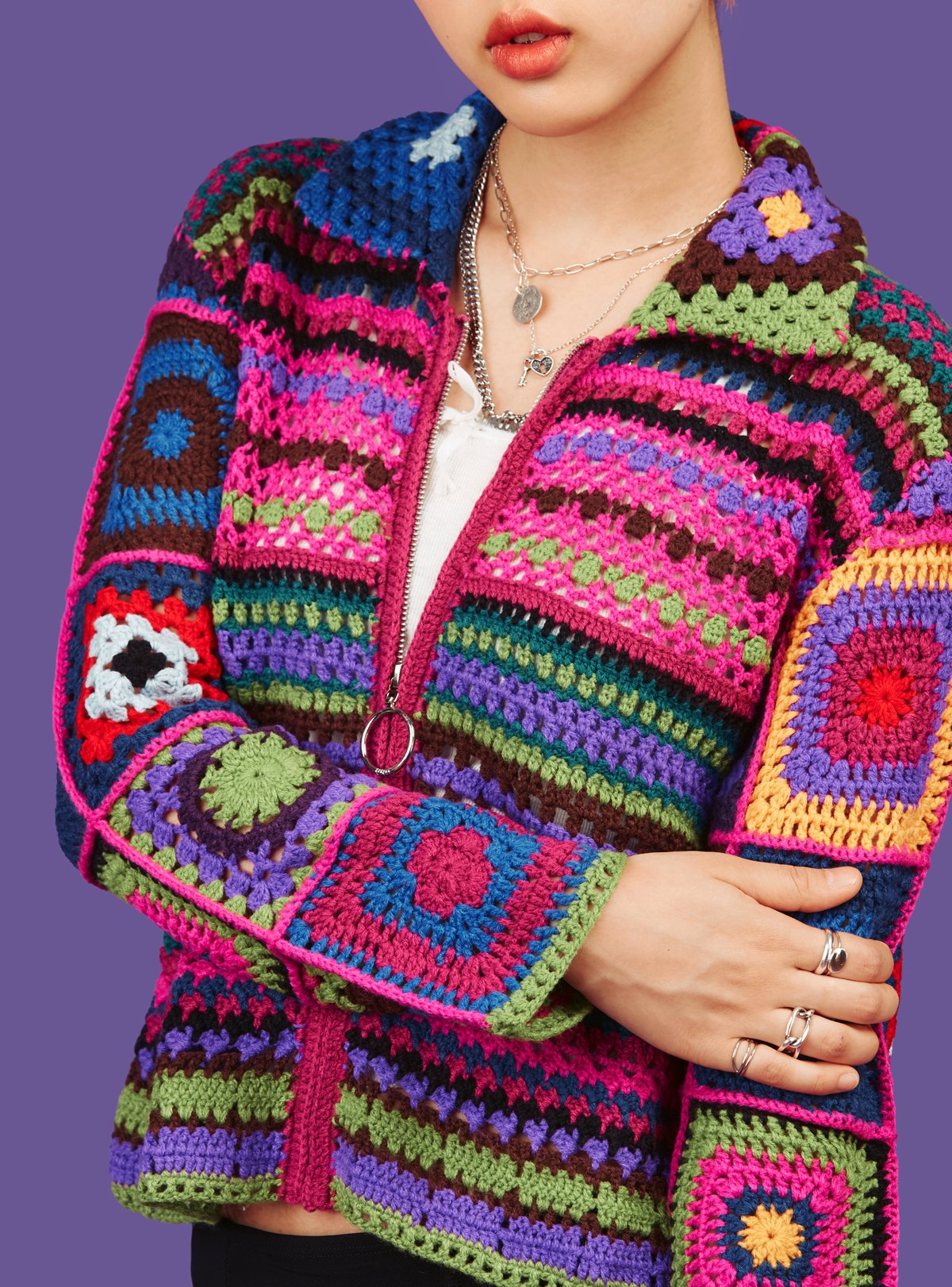 The Melody Sweater is just so, so special. Hand-knitted zip sweater-jacket with branded metal ring zipper pull. A lot of time and care goes into the making of each one of these and each one is a beautiful and unique snowflake.
