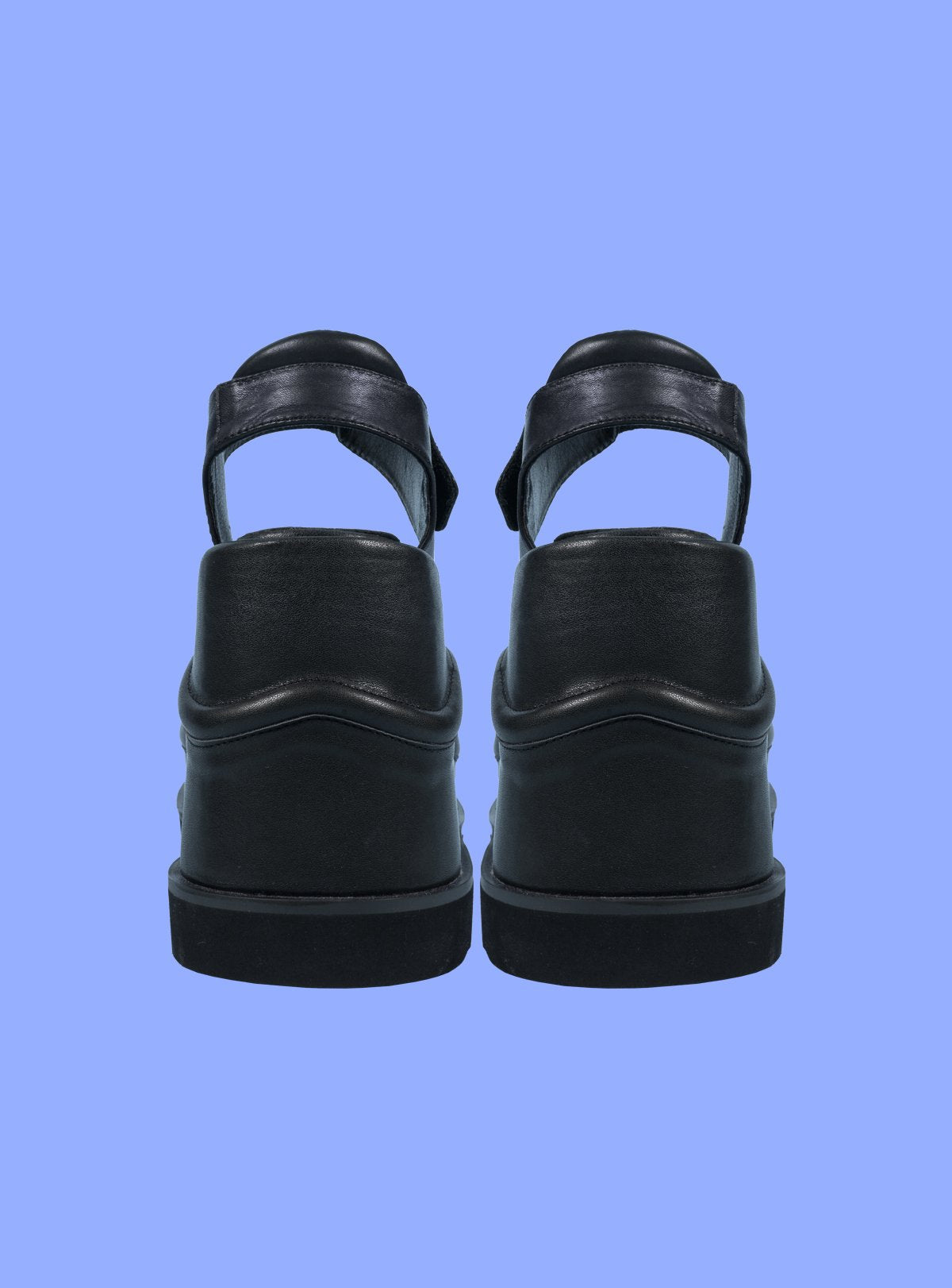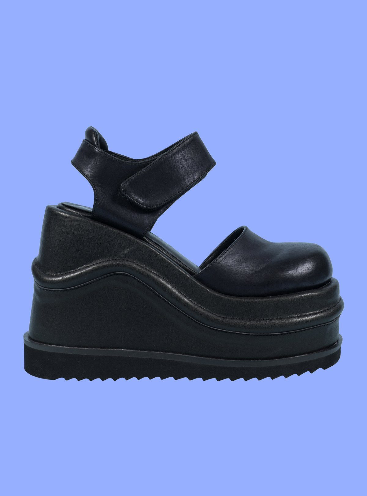 Buttery soft leather platforms with a velcro ankle strap and blunt 90s toe. Padding on back of the ankle strap for a super cozy fit and feel.